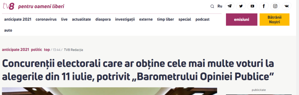 TV 8: Concurenții electorali care ar obține cele mai multe voturi la alegerile din 11 iulie, potrivit „Barometrului Opiniei Publice”